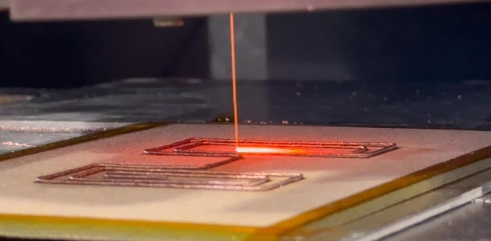 Inkjet printing a molten copper circuit pattern with precise control of droplet placement.